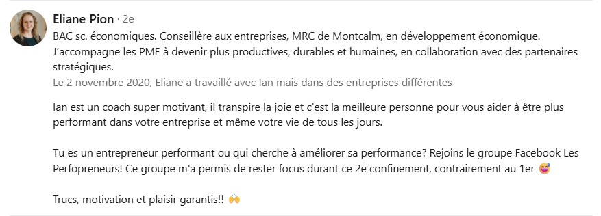 Mon mantra est “Be THE Fucking BEST” dans toutes les sphères de ta vie! Devenir un meilleur humain, un meilleur partenaire, un meilleur parent, ça commence par TOI! Tu ne peux pas donner ce que tu n’es pas! Le Programme Ironstar te guide, t’accompagne à franchir le fil d’arrivée d’un demi-Ironman avec des entrepreneurs, qui comme toi, ont des défis personnel, professionels, manque de temps et surtout, veulent se remettrent en forme et dépasser leurs propres limites!